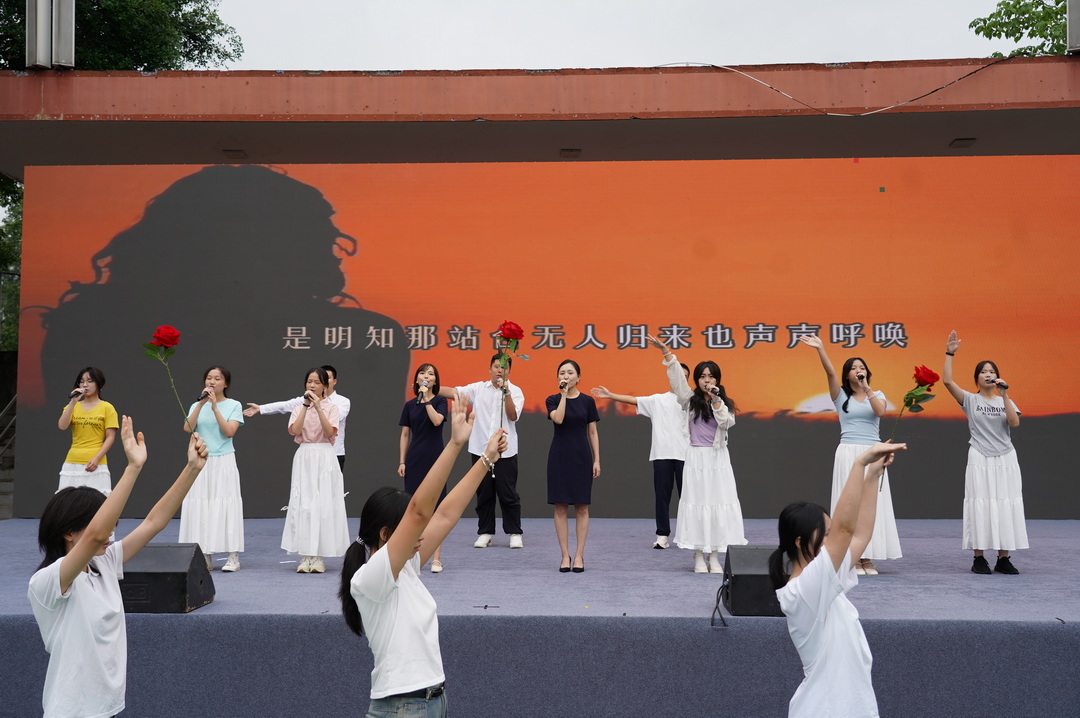 典礼的文艺环节尤为精彩。教师与学生共同呈现了一场别开生面的场景联唱节目。《篇章》《光年之外》《大山》《莫怕莫怕》四首歌曲依次唱响,台上台下互动热烈,歌声传递出希望、勇气与坚守的力量,展现了师生同心、共赴未来的坚定信念。