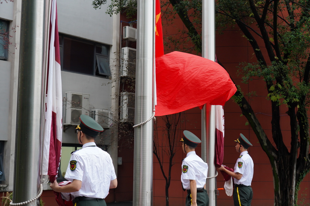 典礼在庄严的国歌声中拉开帷幕,全体师生肃立行礼,师生齐声高唱国歌,肃穆的氛围中洋溢着对祖国的深切热爱与崇高敬意。