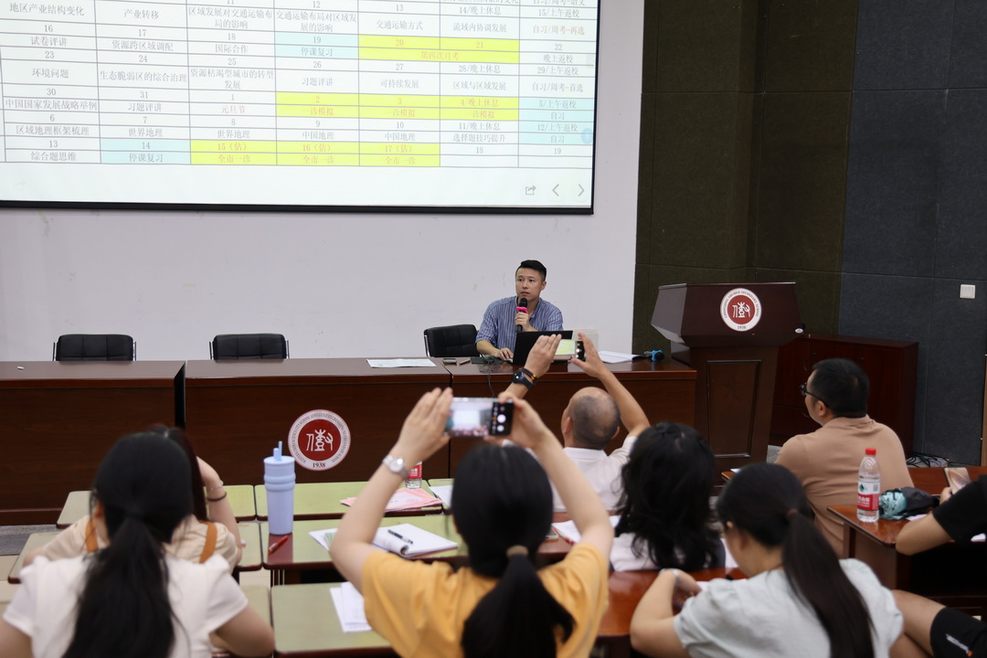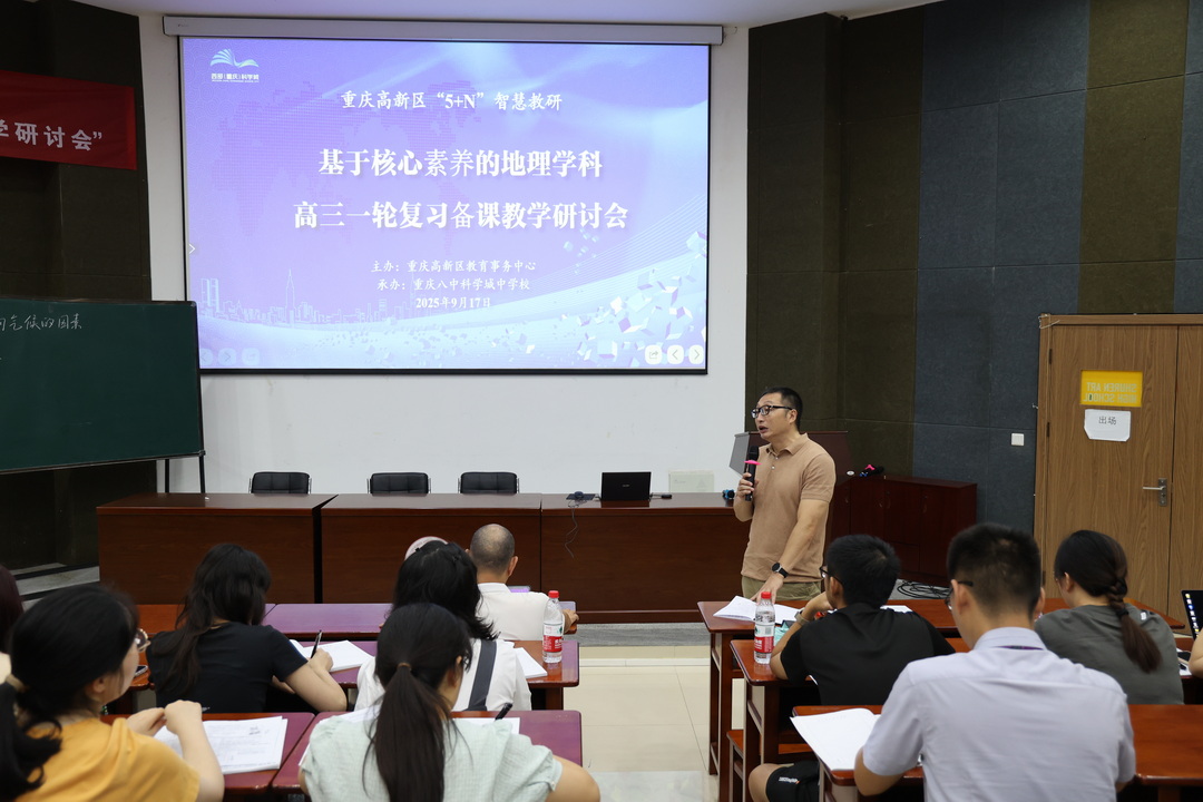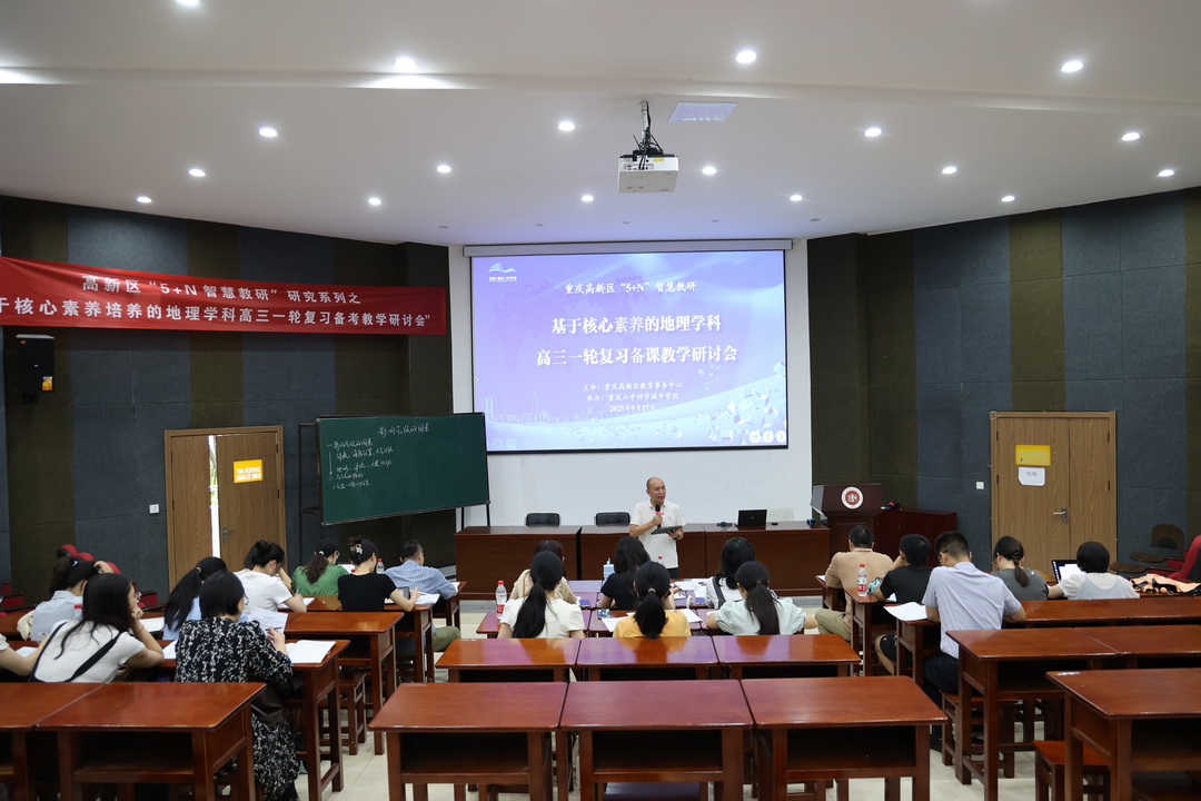 2025年9月17日,重庆高新区教育事务中心教研员陈道华带领高新区各高中高三地理教师,参加了在重庆八中科学城中学举行的高三一轮复习备考教学研讨会。陈道华主持会议并作了主题讲座。
