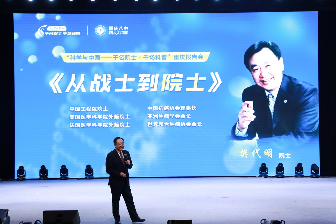 2025年9月30日,“千名院士·千场科普”系列活动走进我校,中国工程院院士、美国和法国医学科学院外籍院士、消化内科学专家樊代明教授受邀莅临,以“从战士到院士”为主题,为全校师生带来一场兼具科学深度与人生温度的科普讲座。讲座现场座无虚席,师生们认真聆听、积极互动,在院士的成长故事与科研感悟中汲取奋进力量。