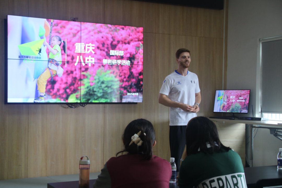 2025年9 月 26 日,重庆八中国际部行走课堂走进重庆市国家攀岩运动员集训基地。在 2017-2023 年欧洲男子速度攀岩纪录保持者、俄罗斯著名运动员兼教练员斯瓦拉的引领下,师生们以岩壁为课堂,在攀爬中感受运动魅力,更在挑战中收获全方位成长。