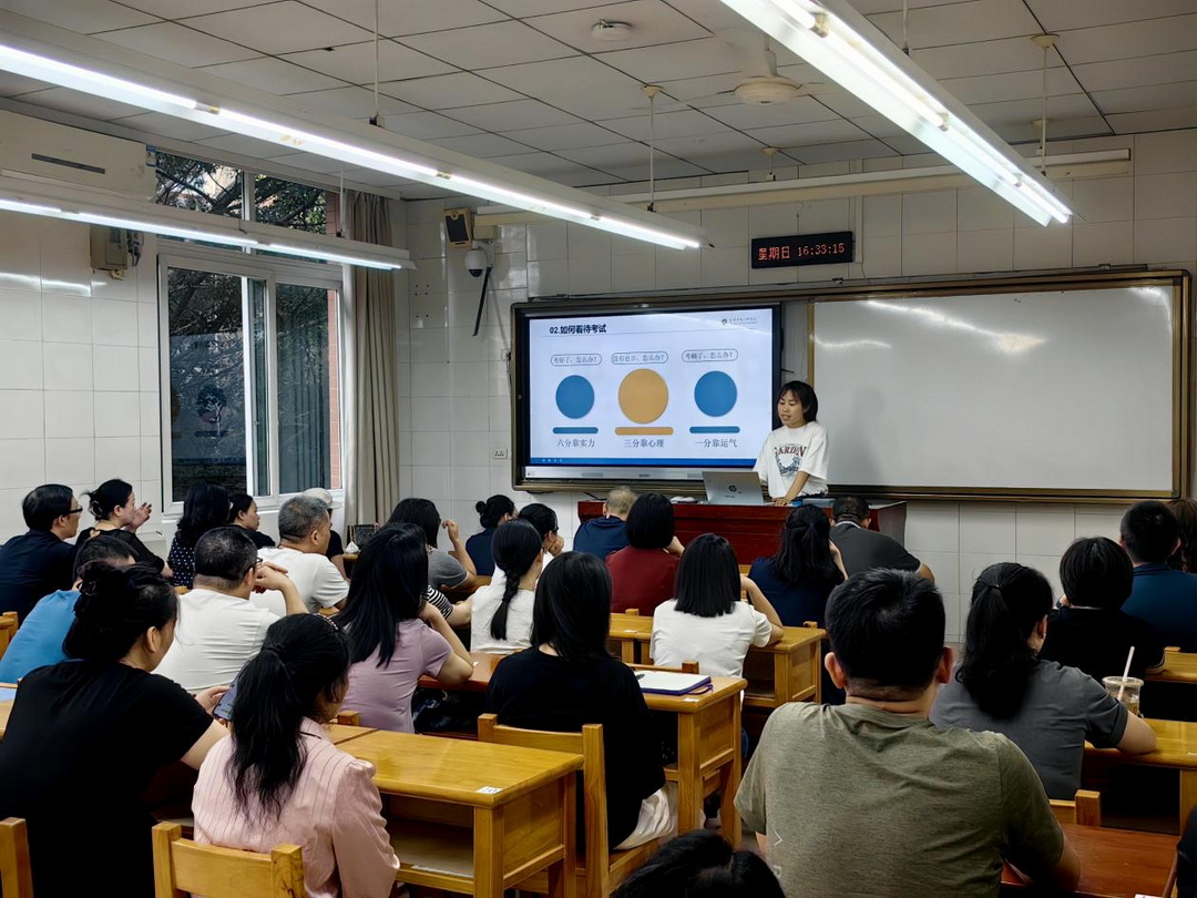重庆八中副校长梅家烨以《奋斗正当时 同心定致远》为题,为家长们带来了一场富有深度与温度的分享。他围绕如何构建理想的家校关系、优秀高三学生的成长关键等核心议题,与家长进行了深入交流。梅校长的讲话主要从三个维度展开:其一,构建理想家校关系。梅校长指出,教育需要家校各司其职、同频共振,共同培养孩子。学校是专业教育、系统备考的“主阵地”,家庭则是孩子成长的“大后方”。唯有双方目标一致、信任互补,才能为孩子的冲刺保驾护航。其二, 不断优化的高三备考体系,梅校长详细介绍了为应对高三的教学教研安排,面对高三从知识广度到深度的跨越、从单一能力到综合素养的挑战,学校已做好万全准备,以高度的专业性为每一位学生的跃升奠定坚实基础。其三,引导家长成为孩子成长的那束光。 梅校长鼓励家长以稳定的心态和积极的行动,成为孩子前行路上最温暖的陪伴和最坚定的力量,真正照亮孩子的奋斗征程。