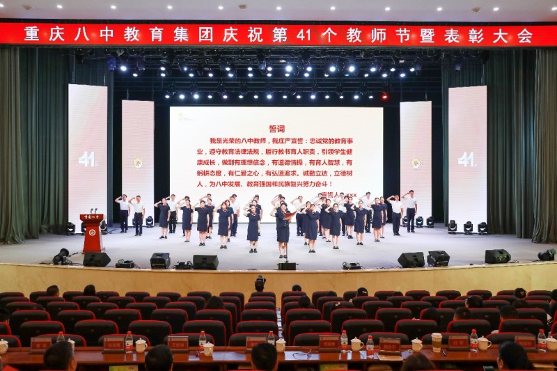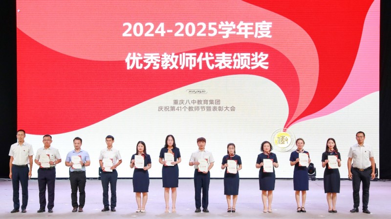 杏坛育英才,师者谱华章。此次教师节表彰大会不仅彰显了重庆八中教育集团对教师的崇高礼赞,更凝聚了全体教职工同心奋进的力量。站在新时代的起点,八中师者将以教育家精神为灯塔,以实干为笔,以初心为墨,在育人答卷上书写更加辉煌的篇章,为教育强国建设贡献八中力量!