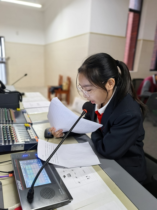 朝会伊始,初2027级3班的肖焯予同学以《敬畏粮食与劳动》为题发表演讲。演讲中,她先带领师生回望往昔饥饿的悲歌,通过近代中国粮食短缺的历史片段,讲述饥荒年代百姓的生存困境;新中国成立后,一代代农业工作者扎根田野、攻坚克难的奋斗历程;接着聚焦科技铸就的粮食奇迹,用杂交水稻亩产突破、智慧农业普及等具体案例,展现我国粮食生产的跨越式发展;最后直面现实的反差与反思,结合校园餐饮浪费现象,呼吁同学们“拒绝舌尖上的浪费,让每一粒米都发挥价值”,言辞恳切,引发全场共鸣。