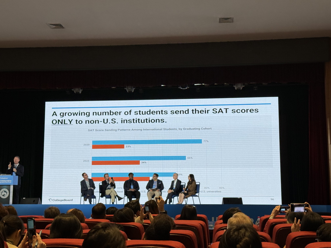 本次年会发布的数据进一步印证了中国国际教育市场的强劲活力与显著趋势。2025年中国地区的SAT Cohort规模相较于2024年显著提高了50%,这标志着中国学生对以美国高校为代表的国际升学路径的规划与准备正在深度复苏。从全球视角看,美国以外地区的考生年度同比增长13%,考试参与度增长14%,相较于2021年,全球参与度更是实现了64%的显著增长,标志着国际教育交流已全面恢复并进入新的发展阶段。在AP考试方面,中国区的报名数量提升了11%,实际参考人数增长了8%。数据显示,中国学生中最受欢迎的五门AP科目分别为:微观经济学、宏观经济学、微积分BC、统计学和物理中国AP考生的学术表现优异,三分及以上的通过率高达80%,远超全球平均水平,充分体现了中国国际课程学生扎实的学术功底与教学成果。此外,在学生申请策略上,“多国联申”已取代单一国家申请,成为不可逆转的主流趋势。