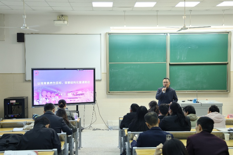 曲靖一中周炯老师则以“培养素养为目标,探索结构化套课路径”为题,分享了素养落地的校本化实践。他提出,素养的培养不能依赖于零散的课时,必须通过“结构化套课” 进行系统设计。他详细介绍了如何以大概念为统领,将教材内容重新整合为具有内在逻辑联系的主题式教学单元,从而在知识教学的同时,系统性、常态化地渗透科学态度与社会责任,实现知识、能力与素养的协同发展。
