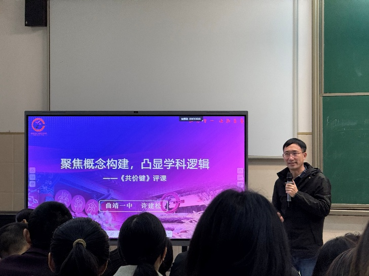 曲靖一中许建松老师则以“聚焦概念构建,凸显学科逻辑”为题,高度评价了王立婷老师的教学。他强调,王老师的课展现了化学作为一门自然科学的内在逻辑美。通过历史脉络的梳理,学生不仅知其然,更知其所以然;模型的应用与性质的推导过程,严谨而富有深度,有效训练了学生的科学探究能力。这是一节重在“授人以渔”,凸显学科本质的课堂。