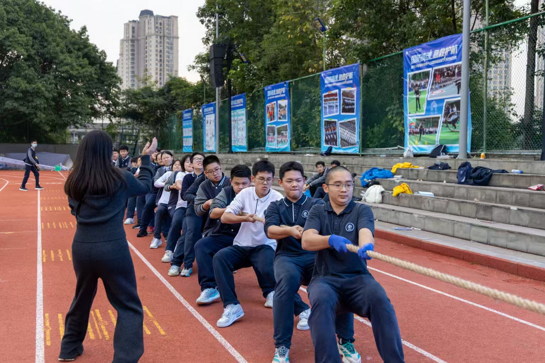 为丰富学生课余生活,增强班级凝聚力,锤炼学生意志品质,2025年12月15日,重庆八中宏帆中学初2026届年级拔河比赛在校园内圆满落下帷幕。