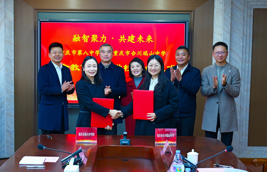 1月9日,重庆八中融合教育共建学校建设签约授牌仪式在合川瑞山中学举行。合川区教委领导,重庆八中与瑞山中学校级领导、中层干部齐聚一堂,共同见证这一重要时刻。